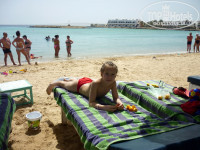 По морю: хороший песок на центральной лагуне, там пару раз загорали, давали ребенку в песке повозиться, ну и бассейн рядом. Но самый писк, конечно, это риф. Он находится на "Марине" - это выдающийся в море каменистый искусственный пляж. Там спуск в море-лестницы. Но это просто класс! разновидностей рыб-штук 50! Видела и осьминога и ската и маленьких мурен!