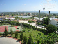 Территория: средняя(много места занимают теннисные корты, которыми никто не пользовался), зелёня, много цветущих деревьев, беседки, есть детская площадка для малышей.