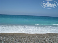 Пляж песчано - галечный (для меня не комфортный крупный грязный песок). Вход в море удобный - галька. Пляж чистый, убирается каждое утро и в течении дня. Зонтиков нет, вместо них навесы метрах в 100 от моря, что не очень удобно. Поэтому когда не было сильного солнца все лежаки перемещались к морю.