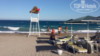 Пляж галька, немого больновато ногам, но в тоже время массаж ступней. Море прозрачное. Рыбки плавают. Мы были в середине мая, немого прохладное. Главное найти силы зайти в море. А потом расслабляешься, привыкаешь и вылезать уже не хочется. Территория пляжа небольшая, но чисто, были свободные зонтики и лежаки. На пляже есть волейбольная площадка, каждый день 2 раза проходила игра в волейбол. На пляже есть зеленая зона, где женщина пекла лепешки, бар. Алкогольный бар работал только в определенное время, а напитки, чай, кофе были постоянно. Так же на пляже есть туалет и душ.
