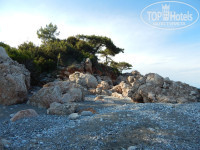 Пляжик маленький, тени нет (деревьев, навесов), только от зонтиков. Вода чистая, море пустое, без живности. В воде булыжники. Что нам собственно не мешало, если в тапках. Вода была холодная (сначала ледяная, потом просто холодная). Ну мы знали, что едем в "низкий" сезон. Поэтому купаться особенно не рассчитывали. Некоторые плавали в море, потом бежали греться в сауну (благо все рядом). Есть сауна и хамам (бесплатные). Там же небольшой бассейн, тоже холодный. Мы вечерком, после ужина иногда захаживали туда поплавать перед сном.
