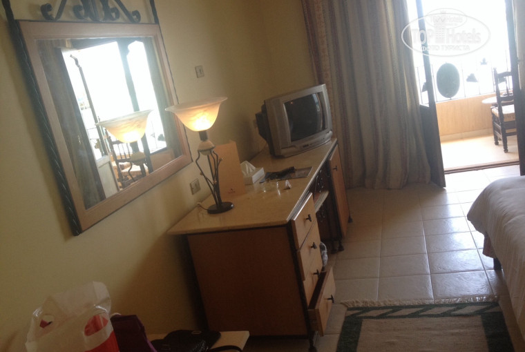 1) Ресепшн. Проблем при заселении у нас не возникло, как писали многие, так как положили в паспорт денюжку и прекрасный номер на 2 этаже в самом дальнем, тихом месте, (подальше от анимации, кухни и прочего шума) с балконом, двуспальной кроватью и видом на море нам предоставили.