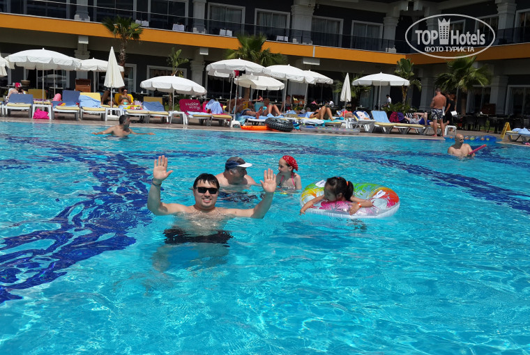 Приехали мы в этот отель по горящей путевке поэтому времени было мало на раздумья, прочитали пару-тройку отзывов и все- таки решили поехать в этот отель. Кстати, туроператором был Anex tour и мы конечно ожидали что ехать будем в большом автобусе и надо будет запастись терпением прежде чем попасть в свой отель. Но это не самое главное. Главное то, что отель действительно превзошел все наши ожидания. Очень современный новый красивый. Персонал дружелюбный и трудолюбивый. Приехали в отель около 10 утра сразу же отправились завтракать, а после завтрака на удивление, не дожидаясь 14.00 заселили в номер. Номер двухуровневый. Все работает: электронный ключ, кондиционер, телевизор, душ. Все чисто и приятно. Прям как на фото в турагентстве. Минусы этого отеля - пляж очень далеко, аквапарк не совсем чистый, вода везде и песок, и слабая анимация. Для совсем маленьких деток конечно нормально, но дети постарше явно скучали. Еда разнообразная. Каждый мог найти себе что поесть. Есть диетический стол, итальянские макароны разных видов, кабачки, баклажаны в разном виде, а вот сладости не впечатлили. Очереди на мангале отбивали всякую охоту там стоять и поэтому мясо на гриле ели в последнюю очередь))). Ресторан а-ля карт (рыбный) понравился. Номер убирался вроде каждый день, но не очень хорошо, видимо потому что чаевых не оставляли. Вайфай работал через раз. Где-то есть где- то нет. В номере на 5 этаже вообще не ловил. В целом отдых удался, отель понравился, дети в восторге от мини- диско по вечерам.