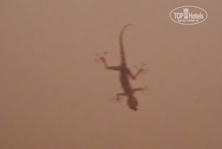 Комар в номер залетал один раз и был тут же убит. Но фумигатор всё таки на ночь ставили. Каждый вечер к нам на балкон приходила ящерица. Давала себя пофоткать, затем пряталась в корпус настенного светильника. Практически домашнее животное.)))