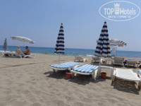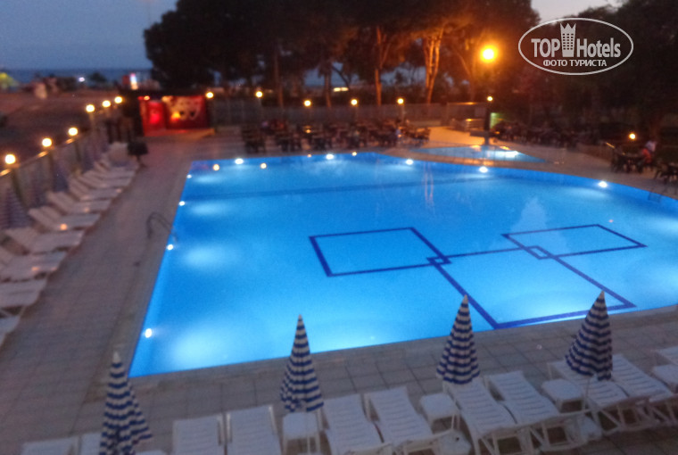 Отдыхали в отеле с 06/06/15 по 12/06/15 с мамой. Отель расположен на 1-й береговой линии. Проход к морю через тоннель под дорогой, т.е. 2 минуты и мы на пляже. Пляж песчаный, шезлонги бесплатно от отеля. Купаться в море действительно тяжело, т.к. при входе натыкаешься на большие плиты, а из-за больших волн удержать равновесие очень трудно. Мы так и не плавали в море, но по берегу походили.