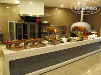 Питание. Очень хорошо, несмотря на отдельные минусы. Вот уж рай для обжор. Каюсь, сам не отличаюсь силой воли в плане вкусной еды. Более всего понравились йогурты на завтрак, отличное мясо птицы (индейка, цыпленок) на гриле, несколько салатов, сладости. Объедались сочными и сладкими арбузами (были каждый день). Дыни сочные, но несладкие. Кто-то писАл про клубнику несколько дней – не видели ни разу, может, просто до нас ее разбирали. Был «рыбный» день: давали роллы (кстати, они были совсем не очень, рис как пластилин), креветки, фаршированные мидии, семгу. Выбор супов – всего 2 наименования, причем один, как правило, острый. Каша была, кажется, только 1 раз (манная). Творога не было. Колбасные изделия не очень. Разок взял сосиски на пробу – безвкусные и как резина. Но можно их и дома поесть, не за этим в Турцию ездят ;) Сыров – огромнейший выбор, видов 20 наверное. Очень вкусный местный мед, видимо из-за обилия ароматных цветов. Некоторые блюда могут сделать при тебе – ту же яичницу на завтрак с выбранной тобой «начинкой» или блины. За поварами наблюдать – одно удовольствие. В основном ресторане играет ненавязчивая музыка. В баре на пляже и баре около бассейна подают очень вкусное мороженое нескольких видов и пекут вафли с 15:30 до 16:30. За ними очередь выстраивается.