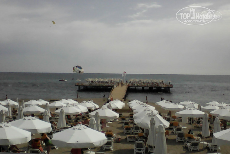 До пляжа идти 5-6 минут, дорога хорошая и приятная, для ленивых есть два электромобиля. На пляже есть прекрасный бар с напитками, в 16-00 пекут отличные венские вафли и предлагают мороженое. Полотенца на пляже дают по карточкам и в конце их надо сдавать. На пляже есть душ на 3 лейки с пресной холодной водой. Лежаки и зонты новые, мусора на пляже нет. Заход в море-слабое место у отеля . Есть камни разной величины как естественного так и искусственного происхождения. Нельзя расслабляться. Пирс новый. но из-за рельефа спуск в воду по лестнице затруднен из-за большого количества ступенек лестницы.