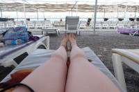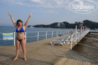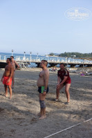 Пляж: пляж грязноват, но в основном, это иголки от сосен, а не железки и стекло, как некоторые пишут. Нормальный вход в море только с пирса, где мы и купались. Причем левый вход мелкий, а правый - сразу глубина. Под пирсом малышня каждый день наносила урон популяции крабов ))). Мы играли в волейбол, площадка довольно каменистая, лучше сразу играть в кораллках. Места на пляже на троих находили всегда.