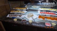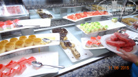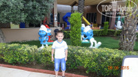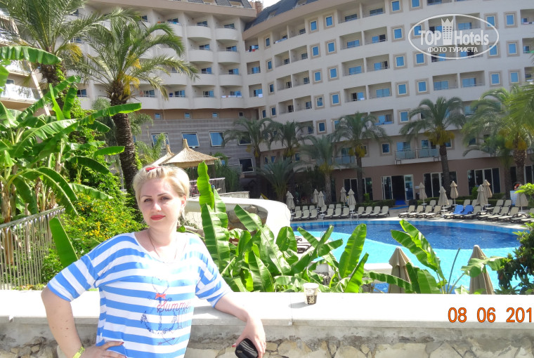 Отдыхали в период с 07,06,15 по 16,06,15. Отличная территория, очень чистая есть где разгуляться !!Отель новый, красивый,номера убирают каждый день(даже личные вещи тоже раскладывают по полочкам), но 1$ оставляли всегда и также за пополнение мини бара (детские соки с трубочкой, вода с газом и без, кола,фанта,кофе.чай.).В номере также были тапочки,халаты и даже фен.(я все думала с собой брать или нет) Очень много бассейнов, один из них с соленой водой. Шикарные горки как для взрослых,так и для детей это непередаваемый экстрим, это нужно испытать!!! Что касательно еды, еда нормальная, есть можно, но еда каждый день одинаковая,как бы приедается. Но десерты здесь я поставлю твердую 5, все очень вкусно и очень много видов. Есть немного фото выложу. Лепешки вкусные, и шарики с медом около соленого бассейна пальчики оближешь! Коктейли на любой вкус, Гуля бармен в отеле ей отдельное спасибо, мы даже скучаем!!!! А вот фруктов был стандартный набор арбуз,яблоки,апельсины и 1 раз груши были, хотелось клубники и черешни. Но ничего дома наелись)))) Пляж песчаный, но есть камни будьте осторожны заходя в воду. Баржа приезжала 2 раза в неделю и чистила камни в море. Для тех кто первый раз в турции, обязательно посетите сипарк+шоу дельфинов из всех экскурсий это мне очень понравилась и находится от нашего отеля в 5 мин. Там белоснежный песок, под водой различные рыбки, развалины, статуи, можно покормить акулу!!! Да и обязательно у кого есть подводный фотоаппарат возьмите не пожалеете! Там продается но за 30$ одноразовый. Также ездили на Барбосе, рай для детей аниматоры переодевают детишек в пиратов все происходит в игровой форме с пеной очень интересно. В завершении я хочу сказать, мы очень долго выбирали отель, так как первый раз в Турции мы хотели, чтобы все было идеально и на высшем уровне! Мы остались довольны!!!