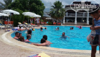 Добрый день, тоже хочу вставить свои пять копеек об этом отеле....Почему-то в этом сезоне об отеле мало отзывов, надеюсь мой будет полезен будущим туристам. В целом считаю свой отдых удавшимся, НО.....честно говоря, ожидала бОльшего...ПРо дальнюю дорогу знали заранее, и были готовы...Заселили мгновенно без доплат...Слава богу,в ту часть отеля,где не слышно дискотеки.Номер нам очень понравился, с видом на море. Про хамоватого дядьку из фойе тут уже много написано, отказ от хамама принимает как личное оскорбление...Противный тип. Главное что меня разочаровало...Мы ехали в отель с питанием "Все включено УЛЬТРА" .Так вот Ультрой там и не пахнет...( Питание в целом приемлимое , из мяса только курица (каждый день) , иногда рыба, печень (очень вкусная) , овощи во всех видах, гарниры неразнообразные- картошка фри, макароны, овощные рагу. Фрукты - черешня, персики, яблоки, арбузы (очень вкусные) .Ну и сладости (ням-ням)....Бассейны приятные, горки хороши и взрослым и детям. Анимация не слишком активная. утром только аквааэробика...Вечером мультики , минидиско и вечерняя программа...Всего три аниматора - русские ребята Катя и Слава, и МУКИ ( веселый турецкий мэн) Честно говоря Катя и тянула на себе большую часть анимации. Слава тот еще "работник", скорее массовка )) а Муки вел только вечернее шоу (нам бы его на целый день )))...Вообще осталось впечатление, что отель скорее молодежный, нежели семейный, .......Повторюсь, в целом отдых понравился, но каких-то ярких эмоций не увезли...Интересующимся отвечу в комментариях на любые вопросы