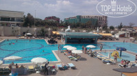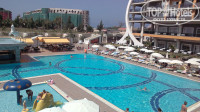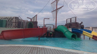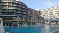 Сам отель большой и уютный, персонал внимательный и дружелюбный, готов всегда придти на помощь, в случаях, если что-то нам было не понятно. Прекрасный вид на территории отеля: большой бассейн, зонтики, шезлонги, детский бассейн, бар и место отдыха, красивые кусты и пальмы! Проход на территорию аквапарка, теннисного корта/футбольной площадки и амфитеатра был сделан через подземный переход. Детский и взрослый аквапарк очень понравился, проехались на всех горках, в обед кушали мороженое, а в 11 и 15 ели лепешки.