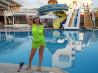 Отель очень понравился,вежливый и внимательный персонал,бармены,профессиональная работа секьюрити,вкусно приготовленная еда,супер-дискотека,прекрасный СПА- салон,классный ресторан "Калинка-малинка",красивая территория,хорошие номера. Хочу приехать в следующем году. 2 минуса-безвкусные фрукты и ягоды,скучная анимация.