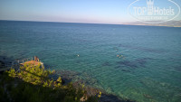 Бассейн и море: вода в бассейне морская, соленая, в душе тоже, но есть душ подальше в конце территории солярия, там можно ополоснуться от соли теплой пресной водичкой. Были люди, которые уже в 8 утра (бассейн открывается в 8-30) стоят у ограды наготове с полотенцами, чтобы занять шезлонги, но места всегда есть. Бар у бассейна работает с 11 до 22.30, из напитков поддельные колы/фанты, чай, кофе, вино белое и розовое, бармен наливает бренди, раки, узо, но пить здесь можно только простую воду и пиво, хотя кому как. Море рядом, нужно спуститься вниз по ступенькам к деревянному пирсу, лесенка в воду не очень удобная, многие просто ныряют, глубина позволяет, около лесенки можно стоять, берег каменистый, но с него тоже можно зайти в море. Крабики бегают, детям интересно. Вода в море прекрасная, чистая, даже если волны, купаться не опасно. Для разнообразия можно пару дней здесь провести. Неплохой песчаный пляж в Сталиде, особенно для тех кто с детьми, 5-7 минут по уютной дорожке вдоль моря, гуляли по ней каждый день и вечер.