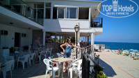 Ресторан: находится в главном корпусе на первом этаже, есть большой закрытый зал и открытая терраса, на первой неделе нашего отдыха я была в восторге, обеды и ужины на открытом воздухе с видом на море и Сталиду, очень вкусная, разнообразная еда (рыба, курица, ягненок, говядина, шашлычки Сувлаки и Гирос из свинины, из фруктов всегда апельсины, арбуз и дыня, мороженое и пахлава), но на второй неделе был наплыв туристов и мы заметили, что блюда стали попроще, разнообразия поменьше, фрукты те же, а вот десерты дочка даже есть не стала, вечером покупали ей в Сталиде что-нибудь вкусненькое, ну и конечно официантам стало сложнее работать, если стол освобождается, то они быстро убирают грязную посуду, переворачивают скатерть, если успевают и кладут новые приборы, а иногда Вы сами себе приборы приносите. Мы приноровились приходить попозже, ждали за барной стойкой около ресторана, когда освободится столик на террасе и звали официанта, главное не нервничать и все будет хорошо, все блюда выносят до конца обеда или ужина. Мы один раз вернулись в отель минут пять третьего, зашли спокойно в ресторан и пообедали, никто слова не сказал, хотя обед до 2-х часов.