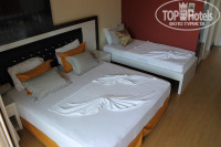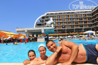 Здравствуйте всем! Отдыхали в Турции 5 раз, семьёй папа мама и дочка 10 лет с 16 по 23 июня. Путёвку брали от Анекс тура, перелёт их авиакомпанией Ажур Эйр (катекавиа)-отлично. Встреча и трансфер до отеля заняли около 2 часов, с учётом развоза остальных туристов по отелям. Наш был последний. По приезду в отель нас приветливо встретили на ресепшн, попросили заполнить анкеты и предоставить ваучеры. Приехали мы в 11:40. Заселение по стандарту в 14:00. Нам одели браслеты и предложили пройти в ресторан на обед. В 14 с небольшим номер нашей категории 2+1 был готов. И как ни странно нам дали Сиа Вью(хотя в отеле 2-й линии это неважно.)(без дополнительной оплаты) Номер на 3 этаже 3041 с видим на бассейн. Чемоданы доставили в номер. Да на ресепшене дяденька настойчиво угостил на рахат лукумом.