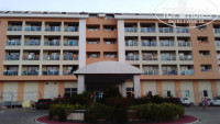 Отдыхали в конце июня, ребенок 10 лет и две женщины. Из аэропорта ехали часа 2, с остановкой на 20 минут, наш отель был первым на очереди. Заселили нас быстро, мы пиехали в 22 часа, номер уже был забронирован за нами. На ресепшене русская девушка, да и остальной персонал понимает по русски. Поселили на 6 этаже, с видом на море и соседний отель, за номер мы не доплачивали. В номере большая кровать, раскладное кресло, тумбочки, стол, шкаф большой, стол, телевизор, большая мансарда, кондиционер, сейф платный, но мы его не брали. В ванной душ, туалет, раковина с большой столешницей, шампуни-мыло-гель пополняли через день, фен. В номере ковролин, как и в коридорах, кое где с пятнышками, но довольно чистый. Мусор из номера выносили каждый день, постельное за неделю поменяли два или три раза, полотенца так же. Постельное кое где с пятнышками, простыни с дырочками. Территория отеля не очень большая. Есть 2 тенисных корта, но всего две ракетки. Стол для настольного тениса. Три бассейна: большой, с глубиной 160 см, детский 40 см, и еще один детский с тремя горками, которые работают два раза в день по два или три часа. Есть кабинки для переодевания и туалет, душ. Лежаки, матрацы, полотенца (их выдают бесплатно, менять можно каждый день с 9 до 11, полотенца хорошие, новые, без дырочек и пятен). Лежаков у бассейна маловато, но больше просто не влезет на территорию. Бар у бассейна. Бассейны чистые, около тоже, периодически ходят уборщики. От бассейнов подземный переход к пляжу. На пляже песок и галька, ходить трудно, но можно. Продаются тапочки, 3$. Бар на пляже и хибарка, в которой пекут блинчики, туалет, душ, кабинки для переодевания, поле для волейбола. Лежаки под навесами и у моря. В море тоже галька, через 1,5 метра глубоко. Море чистое, с волнами. Пляж большой, можно устроиться чтоб никто не мешал. Зловонной лужи не было. Пляж довольно чистый, есть мусорные ведра. Анимация классная. Днем мероприятия у бассейна, волейбол на пляже, вечером шоу в амфитеатре. Смеялись от души, по четвергам огненное шоу. Есть детский клуб и мини диско каждый вечер. Аниматоры умнички. Питание хорошее, разнообразие овощей, гарниров, курица, рыба. На ужин мясо на гриле готовят при вас на улице. Мы наедались до отвала. За неделю набрали по паре килограммов. Из фруктов арбузы, дыни, цитрусы, сливы, персики и нектарины. Официанты убирают быстро, даже слишком быстро. Тарелки буквально из под рук забирают. Салфетки на столах кое где с пятнами, но официанты их меняют. Не хватает столовых приборов, вилки приходится искать по всему ресторану. Иногда они плохо вымыты.