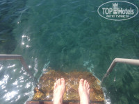 По пляжу: пляж амбросии который арендует отель, очень далеко, и возят утром только туда в 10:30, 11:30, 12,30, и вечером только обратно в 16:00, 17:00, 18:00, пешком идти 20 минут, но один раз сходить стоит, после обеда выйти и обратно можно приехать на развозке , по дороге очень красивые пейзажи, нужно идти наверх вправо при выходе из отеля и перейти через гору и спуститься вниз к морю. На пляже Амбросии вода мутная, дно илистое, нам не понравилось, но туда никто и не ездит. Гораздо проще пройти 500 метров, выйти из отеля перейти дорогу, пройти налево до Перекрёстка и повернуть направо, спуститься вниз к морю, вы увидите экскурсионное агенство Тони. Слева от него находится пляж Coconut beach которым можно пользоваться за напитки, мы всегда брали чай с молоком за 5 лир, ребята за пляжем следят там всегда чисто, прозрачная чистейшая вода, песчаное дно без камней, можно понырять с понтона. В июне вода была холодная, но такая бодрящая.