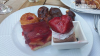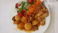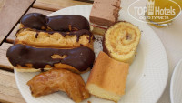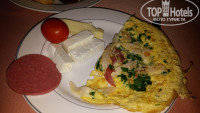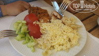 -Еда. Однообразно. Каждый день одно и тоже - картошка, макароны, рис - это хорошо, но хочется во время отпуска поесть чегото такого, что не кушаешь дома каждый день. Креветок просил муж, шашлыка из баранины, рыбки красной.Еда вся очень простая : из мяса это курица и рыба (еще была говядина кусочками с картошкой тушенная, но не каждый же день ее есть) рыба иногда вкусная, а иногда горчила, были еше какието котлетки (не едим такое) супчики вкусненькие и десерты хорошие. Фрукты - арбузы и дыни.Были еще персики более менее на вкус. ( еще были яблоки, апельсины , абрикосы)Хотелось черешню и клубнику - клубника была один раз 23 помоему июня.Это на моей памяти единственный отель, где моим любимым временем приема пищи был завтрак.Вот завтраки вполне соответсвовали 5 звездам. Блинчики и пончики и омлетики, каша, все вкусно.