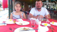 Отдыхали с семьёй с одним ребёнком 10 лет. Отель посоветовали родители, они там были 3 раза, сейчас отдыхают 4-й. Встретили приветливо. Номер дали в панораме хороший, но без балкона, так как муж курит, нужен был балкон, на следующий день поменяли номер без доплаты и без проблем, дали номер с балконом. Очень спокойный и расположенный на размеренный, семейный отдых отель, с великолепными аниматорами. Мы прозвали отель «наркоманским» из-за того что, люди есть, но их не видно и не слышно и это объясняет наличие людей с красными браслетами (отдыхающие 2 и более раз) . Море тёплое и замечательное, рядом на стрёме спасатель. Бассейн очень чистый из-за этого насыщенный запах хлорки, но я считаю это за +, также присутствует и надзирает спасатель. Водные горки хороши, особенно зелёная, жёлтая только лёжа и с разгону (присутствует спасатель). Отель староват, но всё это не мешает ему быть чистым, зелёным и красивым. В номере мини бар пополнялся каждый день бесплатно (очень понравился этот момент минералочка, водичка, газировка с витамином «с» ), уборка ежедневная, смена белья часто, полотенца каждый день. Сейф бесплатно. Уборщицам 5+++. Еда вкусная и свежайшая, разнообразие большое: мясо баранина, говядина, курица, индейка, рыба (тунец, кальмары, мидии и т.п.)и всё это жареное, пареное, на гриле, очень вкусно. Супчики разные: грибной, чечевичный и даже борщ. Фрукты и ягоды : арбуз, дыня, клубника, апельсин, грейпфрут, сливы, персики и др. Гёзлеме пальчики оближешь, с сыром, мясом, зеленью и сахаром. Айран и томатный сок - вкуснота. Всегда можно взять и везде бутылированную воду.В ресторане и баре бутылированное вино и шампанское. Восхитительный спа, отличный медицинский массаж, прохладный бассейн, банька. Аниматорам 5+++ Балу, Алекс, Изет, Катюши, Сельда и всем остальным . Ездили с Алексом на конную экскурсию (за доп. плату) остались довольны, на лошади ребёнок покатался, птиц и животных накормили, сами поели. Водный спорт отличный: парашют, банан, мотоцикл, катамаран и др. за доп. плату. На территории есть аккумуляторные машинки для деток (за доп. плату 8$), магазинчики (купили кепки и шляпки). Ездили на такси (такси стоят возле входа в отель) в магазин Deepo пошопились от души, рекомендуем тем, кто любит качественные и не дорогие вещи, без навязчивых турецких торгашей. Вообщем, посещали все вечерние шоу, караоке и диско очень довольны. Отдых удался – обязательно приедем ещё.