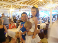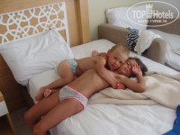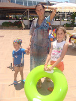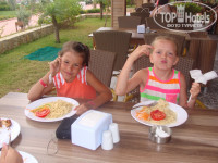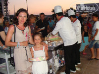 отдыхали в отеле с 18 июня по 1 июля большой компанией из 4х семей, все с детьми.Приехали вечером ,заселили в номера стандарт ,на 0 этаже, номера без балконов и с детьми нам не подходили.Вернулись на ресепшен, просить переселить нас .Нам отказали, сказав номеров нет, зная из отзывов ,что в этом году работает рускоговорящая девушка, кристина, попросили ей позвонить.Общаться пришлось на немецком языке ,на ресепшене.Она пообещала завтра разобраться с ситуацией.Спасибо большое ей и нашему гиду Семену ,благодаря им ,нас заселили в хорошие номера.В рейтинке о заселении поставила 3, а номера стандарт отличные!Мы остались довольны ,а дальше все было хорошо :питание супер на любой вкус и возраст ,ребенка 2х лет всегда было чем накормить без проблем.МОРЕ мяса ,рыбы, овощей, фруктов.Везде, где передвигался, можно было поесть и попить.Пляж чудо т.к.там целый остров: аквапарк ,рестораны ,развлечения, анимация ,в этом году переводилась и на русский.Добирались на пляж на паровозике, как называли его наши дети, 4 мин.езды, а детям это приносило море удовольствия.Море чаще мутное и камни на дне. Не очень приятно.Вообщем рекомендуем этот отель ,думаю вы останитесь довольны .Море для деток не совсем подходит. Если вы за морем,то это точно не сюда!А так отель,конечно рай,особенно на пляже.Хорошего всем отдыха.Кого интересует что-либо более подробно отвечу на ваши вопросы т.к.часто посещаю сайт.
