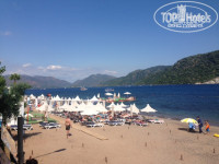 Доброго времени суток. Отдыхали в данном отеле в июне 2015 года с мужем и друзьями из Москвы. Отель оставил положительные впечатления. Территория небольшая, но ухоженная. Номерной фонд скромненький, мы жили в стандарте, хотя семейные номера лучше, просторнее и с ремонтом. Периодически не работал кондер,телефон или фен, но по обращению на рецепшен все неполадки устраняли, персонал дружелюбный,есть русскоговорящие сотрудники, все рады помочь и относятся к русским позитивно. Питание хорошее, выбор небольшой, но все вкусное и свежее, из горячего постоянно рыба, курица, котлетки( говорили из говядины), стейков не ждите, 4-ка все-таки))) Ходили на ужин в соседнюю 5-ку (Blue Bay), там шведский стол территорией с наш отель, отдыхают в основном европейцы, если готовы доплатить тыс 25 за путевку,вам туда. Анимации как таковой нет, есть аниматор Али, который включает музыку, иногда танцует и развлекает детишек у бассейна. Персонал в баре шустрый, все просьбы выполняют, чаевые не клянчат.До пляжа идти мин 5, там располагаетесь либо прямо на земле,либо на лежаках, купив, например, водичку или мороженое. Мы ездили на пляжи в Ичмилер самостоятельно, маршрутка останавливается возле супермаркета Мигрос( маршрутка с оранжевой полосой, с зеленой- это маршрут по Мармарису) стоимость 2,5 лиры( курс 1 лира ориентировочно 22 рубля). Расположение отеля, на мой взгляд, очень выгодное: море рядом, магазинчики,кафешки, до барстрита минут 40 пешком по набережной, либо 5-7 минут на маршрутке. Экскурсии брали рыбалка на яхте и Дальян (советую). Дискотеку в отеле устраивали самостоятельно, так что не скучали, ездили пару раз в местные клубы, весело. Вообще природа в Мармарисе шикарная: море, горы, сосны. Температура комфортная, нет адской жары и влажности как в Азии.. Совет: не сравнивайте отель 4*на Эгейском побережье с Анталийским, здесь будет попроще, зато компенсирует природа и отношение местных к туристам. Все понравились, главное настрой, будьте позитивнее)))