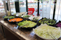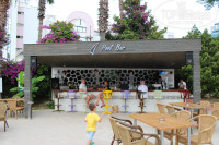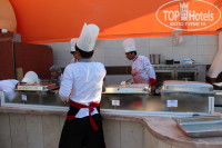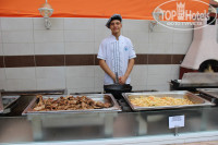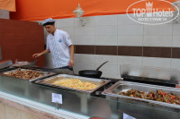 Питание хорошее,завтраки отличные( оладушки,омлет,яйца,колбаса,яичницу при тебе готовят,горячие булочки,йогурты,сухофрукты,печенье,лукум,вафли,сыр,масло,варенья различные,мед),молоко,кукурузные хлопья.Обед :мясо,рыба,печень,курица,гарниры(рис,макароны,картошка),овощи запеченные,овощи сырые,сладости разнообразные,кроме пахлавы,супы,мороженое,фрукты(сливы,яблоки ,апельсины,арбузы,дыни),выпечка. После окончания обеда через пол часа начинается время лепешек, с сыром,шпинатом,фаршем или сыром...Также картофель фри и бывали гамбургеры(которые нужно собирать самим),также в это время сырые овощи и фрукты. С 17 до 18 время чая ,кофе с печеньками и что то типо манника,также бывали булочки. Ужин также суп,овощи сырые,сладости,фрукты,мороженое,гарниры+турецкая пицца,мясо или курица на гриле,шашлык. За ужином на стол ставят 1.5 литровый балон воды,ее можно забирать в номер,в остальное время питьевая вода в кулере в свободном доступе(горячая и холодная). Из спиртных напитков виски,вино белое и красное,пиво,водка.