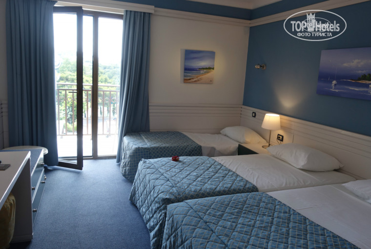 Стандартный номер, размещение было 2+1, две кровати сдвинутые, иногда разъезжались, плюс наш маленький спал на отдельной кровати через тумбочку, по факту это раскладушка, но такая добротная, и стандартный полноразмерный матрас сверху. Номер очень понравился, на полу ковролин а не плитка, т.е ребенок может спокойно бегать босиком, телек LCD с 3 русскими каналами и возможностью смотреть фильмы с USB, что мы и делали по вечерам. Хорошая ванна. Плюс огромное количество места для одежды, 2 шкафа и комод, куча вешалок, очень редко такое бывает что все наши вещи влезли :) К уборке нареканий нет, иногда подкидывал по 2 евро чаевых