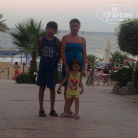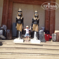 Теперь по порядку с начала.Сразу предлагают за 60 долларов переселиться в Сфинкс, якобы там 5 звезд.Мы согласились, т.к. прилетели утром,а заселение бесплатно только после 14.00. Из номера неплохой вид на море, 2 полутороспальные кровати, в качестве дополнительной - пляжный шезлонг. Территория отелей общая, очень маленькая, все расположено впритык, на пляже шезлонги стоят, как раскладушки в летнем пионерлагере. Гулять негде и некуда. В столовых грязь - стулья, столы липкие. Из еды- макароны, рис, отварная картошка, печенка, рыба, кальмары, иногда курица. Из фруктов апельсины, яблоки, 2 раза за неделю давали арбуз. Два пляжа: один спуск по камням, глубоко сразу, но из-за сильных волн мало кто этим пляжем пользуется, второй типа песчаный, мелкий, под ногами крупные камни - нужны тапки для кораллов.
