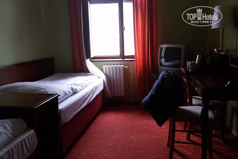 Номер немаленький. Достаточно чистый. Вид из номера на маленькую площадь и смешной памятник.