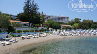 Пляж. Очень круто, что до пляжа от отеля метров 100 по красивой зеленой территории пройти и вот ты уже на море. Море прекрасное, но прохладное. Песочек, конечно, подкачал.. какой-то сероватый и пыльный что ли, при заходе где-то метр мелкой гальки, но это не критично, хотя для меня пляж всегда очень важен. Свободных лежаков была уйма, и прямо у самого моря устроиться не проблема! Да и в общем народу было немного на пляже, что очень понравилось. Пляжные полотенца меняют каждый день у киоска рядом с бассейном. На выходе - душ, хотелось бы еще маленький душ для ног, было бы очень удобно! К слову пляж соседнего village полностью галечная насыпь или спуск с пирса.