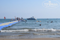 На территории есть еще один пляжный бар, там подают оооочень вкусную пиццу и неповторимый турецкий кофе.Пляж чистый, его всегда убирают, песок чистый и в зной необыкновенно горячий, ходить только в тапках по нему!Много лежаков, можно взять матрасик, везде зонтики.Есть "живой" пирс) - он шевелится когда на нем стоишь.Его шевелят волны.Дно все песчаное,почти до середины пирса по пояс.Пляж охраняется,на пляже есть спасатели и конечно же и тут аниматоры не спят! Проводят бочу, пляжный волейбол недалеко на газоне проходит зумба. Территория большая и очень зеленая, видели колибри, периодически сова ухала, из деревьев запомнили авокадо, апельсины,лимоны, банановые пальмы и еще всякие всякие цветы,клумбы садовники низкий вам поклон за ваш труд. За корпусами располагается аллея по которой можно прогуливаться вечером, она начинается стрельбищем (там проходит анимация- стрельба из лука и стрельба из винтовки) Закачивается аллея теннисным кортом и площадкой для мини гольфа и мини футбола.На территории отеля работают рестораны а-ля карт. Мы за время нашего проживания успели посетить только один Оливия -итальянская кухня. Все очень вкусно, быстро.
