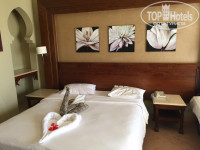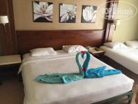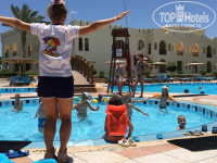 Данный отель далеко не 5 звезд. Хозяин отеля египтянин, поэтому экономят там на всем. Пребывали там мы с мужем и двумя маленькими детьми, 15 дней. В Египте мы были уже много раз, но в таком отеле впервые. Заселили нас быстро, мы вложили в паспорт 100 $ и нам дали номер во 2 корпусе с видом на море, вид отличный. В принципе как потом заметила, номера у них все стандартные, абсолютно одинаковые. Другие туристы жаловались на комаров, но у нас их не было. За уборку номера оставляла по 2 $ каждый день новые фигурки на кровати были всегда :) Пляж ужасный, берег тоже... люди как лягушки по щиколотку барахтались...ужас одним словом. За 15 дней 3 дня был полный штиль, в остальные дни сильный ветер. Периодически был красный флаг, с понтонна купаться запрещали. Очень сильные волны и течение, практически всегда. При нас утонул мужчина, спасатель даже не смог оказать первую помощь, не подпускали и оказывать ее, ссылаясь мол только врач может, в итоге мужчина умер, его быстро без шума унесли, чтобы не было паники и сказали "инфаркт в воде, форс-мажор, ничего не знаем и тд" , но людей, которые это все видели, не обдуришь. Экономят даже на профессиональных спасателях. Купаются с пирса 3 отеля, а смотровой один щуплый парень. Другие туристы шепчутся, что за два дня до этого еще турист утонул.Ужассс..... Еще пристают на пляже по страшному ( массаж, экскурсии, кожа и тд) изо дня в день. У бассейна и в баре на пляже официанты предлагают купить у них бутылку алкоголя, откуда они ее взяли - сами знаете. Секьюрити в белых рубашках у бассейна и на пляже скидывают полотенца и одежду с лежаков откатывая его для клиента за пару баксов. У нас дети в первые два дня сгорели на солнце, руки аж до мяса:( Света, детский аниматор, порекомендовала крем, кстати очень хороший. Купаться с такими руками соответственно нельзя было, я им бинтовала с кремом ( бинт нам Света дала безвозмездно, сказала нужно будет - приходите берите) мне неудобно как-то, пошла в медпункт, врач с умным лицом сказал перебинтовать ручки 30 $, муж попросил бинт бесплатно для ребенка, врач твердил 30$ давай.....В аптеке при гостинице бинт стоит 2$ такой маленький 3 на 3 см на 4 оборота. Вот так...В ресторане считают каждую ложку сколько ты взял. Стою, мясо накладываю, вдруг араб в белом халате как заорет " только одну" я в шоке была, фрукты по одному кусочку, сами арабы накладывали на тарелки. Были яблоки, апельсины, дыня, финики пару раз. Очень и очень скудное питание, однотипное, маленький выбор. Мороженое детям каждые 2 дня бесплатно только на ужин, в другое время на пляже или у бассейна за деньги 2$, дети наели на приличную сумму. Кстати, это первый отель, где мороженое платно. Ребенок в баре на пляже взял яблоко, так официант прибежал - подпишите, это платно. Все у них платно, развод на деньги при все включено, ужас...На улице у главного ресторана детские машинки и игровые автоматы за деньги, при этом у них все так грамотно раставлено, магазинчики, машинки электрические и др все по ходу передвижения гостей отеля, все это навязывается, и постоянно...В отеле отдыхают 90% украинцев, 4% русских, 3% немцев и 3% американцев. Аниматоры все молодцы, ребята очень стараются, чтобы всем было весело. Чтобы занять шезлонг приходилось вставать в 5 утра, тк в 8 утра было все занятно и на море и у бассейна. Знаю, что многие травились, несколько дней лежали в номере. В принципе это во 