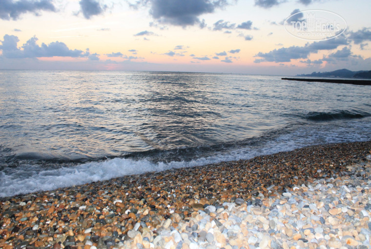 Отдыхали мужем во второй половине сентября 2014 от туроператора Библио Глобус (выходит ещё дешевле тысяч на 5-6, чем самому бронировать), отель для уровня 3*** очень хороший, уборка в номере каждые 2-3 дня чисто. Санузел совмещенный на вид новый, всегда чистый, приятно удивило наличие геля д/душа, шампуня и мини-мыло, в туалете бумага и вода горячая/холодная есть всегда. Интернет быстрый, сигнал устойчивый, этаж был 3. Из номера вид на море и железную дорогу, если оставлять окно в номере на ночь открытым, то поезд может разбудить, очень слышно, если окно закрыть-не слышно. В номере есть телевизор, шкаф с полками и вешалками (вешалок маловато), полотенец по 3 шт. на человека (по 2 белых, и по одному темно-синего цвета д/ног), пляжных полотенец нет. Весь персонал вежливый, кухня, уборка, ресепшен. Питание 3-х разовое разнообразное ближе к домашней пище, если что-то не понравилось (у меня своеобразные личные вкусовые предпочтения и представления о еде иногда), можно заказать за свой счёт, цены вполне приемлемые и демократические или питаться в разы дороже в других местах. Территория отеля чистая, облагороженная, даже есть бассейн небольшой с пресной водой за кухней. До моря от отеля не более минут 5 добираться, главное перейти ж/д пути, пляж каменистый (камни неострые, ходить можно), шезлонгов, конечно, нет даже платных. Рядом с отелем палатки с туристическими товарами, есть продуктовые магазинчики, винные погребки, океанариум, аквапарк, до Олимпийского Сочи ехать 17 км, минут 20 (единственный минус дорожная развязка, на своём авто трудно разобраться что к чему, вход свободный, а вот туалеты 30! руб. за раз), недалеко есть парк "Южных культур" (смотреть там почти нечего, стоимость входа туда того не стоит, цена слишком завышена), есть недалеко "Дендрарий" (стоит сходить, вход платный, есть канатная дорога оплачивается отдельно), есть бесплатный парк "Ривьера", есть красивые места и что посмотреть. За Олимпийским Сочи есть Сочи-Парк расположен в 100-200 метрах от него (вход, конечно, платный, при покупке через интернет по карте или после похода в океанариум/дельфинарий предоставляют бесплатно купон на скидку 10-15%). В Сочи-Парке много аттракционов, красивая большая и чистая территория, много развлечений д/детей. В общем, недорого, удобно, отель и сервис очень хороший для 3-ки. Но для тех, кто привык к 5* отелям и сервису All Inclusive, не ждите за такую скромную стоимость всё и вся.