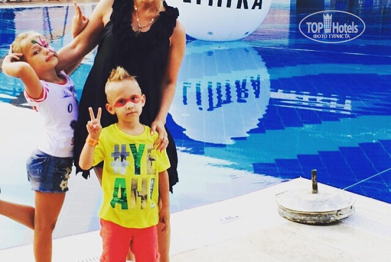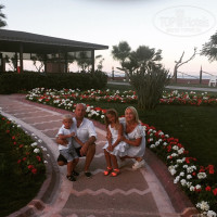 Всем привет! отдыхали с семьей 14 дней (я, муж, двое детей 8 лет и 4,5 года) с 4 июня 2015 года. Постараюсь написать о самом главном. Летели из Харькова, очень удачный вылет в 11 утра, заселили нас быстро, примерно в 16.00 уже были на территории отеля, номер дали в главном корпусе на 2 этаже, возле ресепшн, все вроде бы отлично, номер прекрасный, но...с балкона вид на крышы, т.е. вида нет совсем никакого, мы расстроились, т.к. мы с мужем любители перед сном, когда засыпают детки посидеть поболтать на балкончике...Пошли просить заменить номер, обещали сделать, но через 2-3 дня, и теперь самое главное - случайно узнали, что замена номера должна быть внесена на ресепшне в список замен, иначе вас просто будут кормить завтраками...мы проследили, чтобы нас записали - и вуаля - через 2 ночи нас переселили в корпус возле детской площадки и горок, что для нас было очень удобно, на первом этаже с красивым видом на природу как и хотели...так - это проехали...Территория отеля большая, красивая, ухоженная и самое главное - все очень компактно, рядышком, что тоже очень удобно, чистота везде идеальная...На море возле лежачков песочек, а вход море галька, конечно не очень удобный заход в море, но это для очень нежных...первые 2 дня мы тоже никак не могли привыкнуть, уже шли покупать спец.обувь, а потом решили, что это своего рода массаж для наших ножек и решили попробывать обойтись без нее, и правильно сделали - и мы и дети так привыкли к гальке, что дней через 5 бегали по ней без проблем, море чистое, через день было волнующее, но не сильно, температура воды была в начале отдыха 24, при температуре воздуха 27, не сильно жарило - поэтому к водичке нужно было привыкать...дня через три-четыре, т.е. 7-8 июня воздух прогрелся до 37 и вода соответственно стала 27 градусов - дети из воды не вылазили....на море приходили мы примерно в одно и тоже время, в 9 утра, и выискивали последних 2-3 лежачка, ставили их непосредственно перед водичкой, хотя полно лежаков просто стояло с полотенечками (наши "умные" соотечественники занимают лежаки и у моря и у бассейна на всякий случай, неважно появляются они там или нет), бассейнов несколько, и для самых крох и средний с горками и большой, горки прикольные, наша семья каталась до упаду, т.к. с моря мы уходили часов в 12, место возле бассейна было занять проблематично, но находили, а потом поняли, что нам достаточно одного лежачка, т.к. мы либо в баре возле большого бассейна в тенечке сидели, либо на горках катались, либо просто с детками дурачились в бассейне...Очень понравилась детская площадка на берегу моря, во-первых было где поиграть детям в перерывах между купанием, во-вторых в тенечке, в третьих - удобно было следить за ними, еще есть детская площадка возле горок, но она до самого вечера под солнцем, поэтому наша детвора играла там перед ужином или перед сном. Дальше о питании, завтрак как обычно везде, даже не буду углубляться, ничего сверхестественного, вообщем как и везде, на обед мы если честно не ходили, как то так повелось у нас.....возле главного бара есть кафешка, где всегда была рыба, мясо, гарнир и овощи, что еще нужно для счастья??? ))) и все это в тени под деревьями возле водички - прелесть....дети иногда бегали в главный ресторан за арбузом - но это святое...все напитки подносят официанты, что тоже очень удобно, если мы засиживались на долго и приходилось часто гонять официанта, т