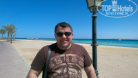 Когда мы увидели море, то просто обалдели от изумительной красоты. Небесно-лазурный цвет приятно радовал глаз!!! Отдельный плюс по расположению отеля – это то, что он находится между мысом и пирсом, а потому на пляже никогда нет волн и спокойное море, а также ветер значительно слабее, чем в других отелях этого залива, что является большим плюсом для тех, кто не любит неспокойное море. Пляж очень широкий по всей территории отеля, а это примерно 200-250 метров. Лежаков на пляже было всегда предостаточно. Места всегда хватало всем даже в центре, поближе к бару, а по краям вообще всегда было пусто, но это вероятнее всего было потому, что летом отель всегда заполнен не полностью. Что касается самих лежаков – мы читали много отзывов об их плачевном состоянии, но… Могу отметить, что в центре пляжа большинство матрасов было заменено на новые! По крайней мере складывалось такое впечатление, что их недавно заменили. Однако по краям пляжа, где не было туристов я все таки видел несколько немного рваных матрасов на лежаках. Сами лежаки металлические и естественно они немного ржавые, но это вообще никак не напрягало и по-моему вполне естественно. Вход в море представляет собой полосу песка 3-6 метров от берега, в зависимости от прилива или отлива, а дальше идёт срезанная коралловая плита, местами поросшая мелким мхом. Естественно, что плита срезана не идеально ровно, а потому в ней много ямок, трещин и прочих неровностей, что при первом входе вызывает некий дискомфорт. Однако потом я приловчился и понял, что как раз проще ходить по участкам где растёт мох, но делать это надо осторожнее, чем по песку, чтобы не подскользнуться. В дальнейшем я вообще не пользовался коралками, а всегда заходил в море босиком. Что касается снорклинга, обитателей моря и коралов, то могу сказать одно - если вы хотите посмотреть богатый подводный мир, то нужно плыть по пляжу влево метров 300-350 (ориентир на бакен). Там ежедневно приплывают яхты и корабли, чтобы посмотреть отличные рифы и богатый подводный мир. Более подробно об этом написано в следующем отзыве, который советую прочитать