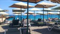 Море великолепное, чистое и теплое. По утрам очень спокойное, а после обеда гуляют небольшие волны. Пляж галечный, небольшой, но свободные лежаки мы всегда находили. Из минусов старые не просыхающие матрасы на лежаках и утренняя приборка вчерашнего мусора.