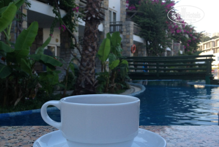 в 2015 году у Ayaz-Aqua добавилась звездочка и он стал четырехзвездочным отелем. До этого времени я отдыхала в пятизвездочных отелях, но с кризисом пришлось перебраться в другие. От Ayaz ожидала худшего, в действительности он меня порадовал - небольшая, но зеленая территория, корпуса с широкими балконами, заросшими бугенвиллиями, извилистое озерцо бассейна с деревьями вокруг, ресторан на открытом воздухе под шатром, плетеные кресла, столы из дерева. Номер большой и просторный, постельное белье меняли ежедневно, убирались чисто. Кормили хорошо, но не хватало мяса на гриле. Завтраки были такие же как и везде - яйца, омлет, иногда жарили блины, нарезки, сосиски, маслины, сыр, булочки, фрукты. Днем устраивали волейбол, вечером (через вечер) приезжали танцевальные коллективы)). На самом деле ночная жизнь в Гюмбете бьет ключом и после ужина народ расходился. В барах просиживали туристы всех возрастов от .... и до 60. В нашем отеле отдыхали в большинстве поляки и семейные турки, а также голландцы и расписные англичане. Русских мало и стафф по русски не говорит.