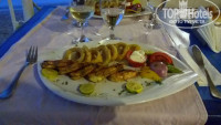 Теперь про еду. Для меня выбор блюд был более чем достаточный, при том, что я не употребляю мясо, я даже не все успела попробовать за 10 дней. У меня за время поездок в Египет сложились свои вкусовые пристрастия, я обожаю египетский вкусный хлебушек, люблю, как они готовят рыбу, творожный сыр, рис, запеченные и свежие овощи и зелень, а еще овощные супы-пюре, за них отдельное спасибо) Сладостей тоже много, и каждый день есть фрукты - яблоки, дыни, арбузы, апельсины. В связи со статусом на второй или третий день нам в номер подкинули приглашение на гала-ужин. Кормили в итальянском ресторане, но там был стандартный набор блюд для всех, первое, второе и компот (он же коктейль) запомнился борщ на первое))) в а-ля-кард мы не записывались, мне было достаточно еды в основном ресторане, но в один из вечеров мы ходили на ужин в платный рыбный ресторан на пляже, комплексный ужин стоит 15$, можно просто по меню заказать отдельные блюда. Мы выбрали комплекс, и нас так накормили, что из ресторана мы выкатились)) Мне очень понравились креветки и кальмары. Еще там желающим приносят бесплатный кальян. А еще там очень красивый вид на вечернее море. А еще там котики)) Рекомендую к посещению! Помимо всего вышеописанного, в пляжном баре днем работает фаст-фуд, готовят картошку фри, гамбургеры, дают мороженое. Короче говоря, голодными не останетесь, даже если очень захотите. С напитками в отеле туговато - я пила воду и чай, порошковые колы-спрайты-соки меня не вдохновляют. На завтрак мы покупали свежевыжатый сок (2$), его давят в уголке возле супов. А более крепкие напитки мы предпочитаем привозить из дьюти-фри)