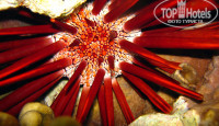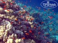 Много триггеров голубых и титановых, несколько актиний, крылатки по утрам и вечерам.