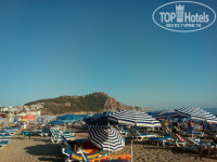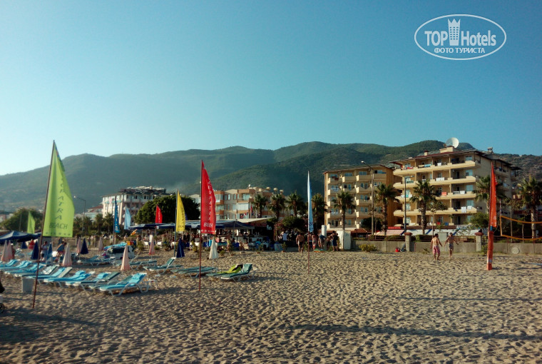 Отель расположен в очень красивом месте: с одной стороны горы, с другой стороны море. Береговая линия первая. Место очень красивое и нереально тихое. Я бы даже сказал, что вечером этот район представляет собой по уровню громкости городских шумов, спальный - что определенно меня радует, т.к. не каждую ночь будет хотеться тусоваться, а вот отоспаться после проведенного в морской пучине дня точно не помешает. До городского пляжа идти спокойным шагом минуты 3-5, т.к. он находится на расстоянии 70-80 м от отеля. Пляж очень чистый и ухоженный: есть платные шезлонги и зонтики, а также "переодевалки", душевые и бар. Днем, когда температура воздуха достигает 40 градусов и по песку нет возможности идти босиком - сотрудники пляжа при помощи шлангов с водой увлажняют пляжный песок. Вода в море теплая настолько, что заходя в нее - нужды делать телодвижения для "привыкания" абсолютно нет: забежал и поплыл. Море очень чистое и относительно неглубокое (даже на расстоянии от пляжа 20 - 30 м). ДО центра города и до самой главной "клубной" улицы пешком идти 20-30 минут.