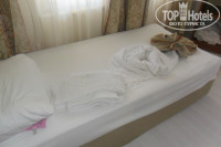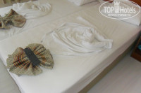 Отдыхали семьей с 12 по 19 июля, остались довольны. Приехали мы в 6 утра, заселили только после 12 дня. Нам одели браслеты и мы гуляли по территории отеля, сходили на завтрак, купались в бассейне. Пока ждали заселения дочь успела посетить хамам. Затем нас заселили в номер, вещи помог донести администратор с ресепшена. Номер чистый, для троих очень даже просторный, балкон очень большой, вид с балкона порадовал. Сантехника вся работала исправно, кондиционер тоже. В холодильнике была одна 1,5л бутылка воды ( при заселении), потом ещё приносили, ставили на холодильник. Проблем с водой никогда не было. Территория отеля ухоженная, зелени много, растут оливки, апельсины, персики, хурма, гранаты. Пляж близко, море действительно неспокойное, но это не такой уж большой минус, заход без тапочек с берега доставляет неудобства, хотя моя дочь спокойно заходила без тапочек, а я не могла, только с пирса. Питание разнообразное, мясо было и его вполне хватало, рыба тоже была. Кофе очень вкусный. Голодными не останетесь! Из фруктов были в основном арбузы, яблоки, апельсины, грейпфруты и сливы. У нас в номере убирали каждый день, делали фигурки, очень приятно, полотенца тоже меняли. Персонал вежливый. Очень понравился хамам, массаж. Спасибо огромное массажисту Даше-профессионал своего дела (она работает в медицинском центре, так что человек знает и умеет делать профессиональный массаж)!!! Спасибо Рамазану( у него тоже медицинское образование) за отзывчивое, добродушное отношение! Аниматоры молодцы! Лично я ходила на фитнес- зарядки, которые проводила аниматор Лена, у бассейна мы танцевали диско вместе с аниматорами- Патрицией и молодым человеком(очень забавным, энергичным, он вел детские программы, к сожалению имя его не запомнилось), всё это проходило до обеда у бассейна с горкой. Кто хотел, играл в волейбол. Вечером тоже были интересные программы: Камеди-шоу, Мистер Сирена Бич, Фаер -шоу, а после дискотека, вот только для деток вечерняя развлекательная программа была однообразная, но детишки с удовольствием участвовали, а днем для деток аква- грим, была открыта детская комната. Очень понравилась и запомнилась пенная вечеринка -СУПЕР!!!