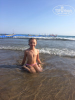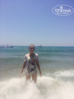 Море чистое и теплое. Пляж песчаный. Вход в море комфортный. Чтобы не разбить ноги об камни, купаться нужно справа от понтона, и обязательно стоит пару раз рано утром или в штиль обследовать прибрежную зону и запомнить расположение камней, благо их немного. С понтона нырять не рекомендую, глубина всего 140 см и камни на дне. Вдоль всего залива проходит уютный променад, идеальное место для вечерних прогулок после шоу.