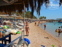 Пляж очень маленький. Лежаки стоят впритык друг к другу. Народу очень много, чтобы спокойно поплавать, надо отплывать подальше, иначе просто не протолкнуться.