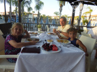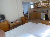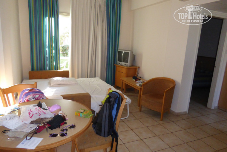 Добрый день. Отдыхали в Tsokkos с 17 - 29 июля, мама - папа - две дочки 4 и 6 лет. Прилетели мы рано, часов в 10 утра, семью перед нами заселили сразу, нам сказали, что к сожалению, номер будет готов к 14 00. Честно говоря, проблемы в этом мы не видели, я подготовилась :) Я достала все купальные вещи, полотенца, переоделись в туалете, оставили чемоданы в холле на рецепции, и пошли на пляж. Пришли обратно в пол второго, и нас заселили. Номер двухкомнатный. Всё, что описывалось в предыдущих отзывах - всё точно и верно. От себя я отмечу только те пункты, которые были для нас удобны или не удобны. Для младшей дочки нам поставили раскладушку. По моему мнению, она была очень неудобная, но ребёнок в ей спал отлично кажется, поэтому мои волнения были напрасны. Но! раскладушку нам по заезду поставили в общей комнате, и места для прохода на террасу не стало. Далее ) Телевизор (старенький такой, большой, без юсби входа) у нас был так же в общей кухне, поэтому надо было решать вопрос: или мы с мужем ложимся в спальне и не смотрим телек ночью (перенести телек нельзя, антенна выходит только в общей комнате), или мы детей отселяем в спальню, а сами ужимаемся на раскладной кровати в общей комнате. КОроче, скажу сразу, что мы много способов укладки спать испробовали )) Дальше. Чего мне лично не хватало в апарте. Микроволновки. Очень не хватало. Чтобы разогреть детям хотя бы молоко, его надо было или доставать часа за 2 из холодильника или греть в ковшике на плите. Не было нормального ножа и открывалки для вина. Мы пошли в супермаркет, но с ножами у них какая-то проблема. Так что, если есть возможность - везите лучше из дома )) Не было тёрки) поэтому сыр на макароны и морковку для супа я убилась нарезать ломтиками (( Ещё мне не хватало посуды для готовки ) Например, салатника )) и вообще из посуды у нас были 1 бооольшая кастрюля, 1 ковшик и 1 сковородка большая. 4 ложки - вилки - глубокие тарелки - большие тарелки - чашки - бокала. Всё.