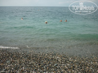 Пляж и море: от 8 корпуса до моря шли 25 минут (10 по территории, 15 по частному сектору), заглядывали в сувенирные лавки. Было бы лучше с трансфером до моря, по жаре тяжеловато идти. Пляж - галька, нужны специальные туфли (250 р.). На пляже раздевалки, туалеты-30р., душ. Шезлонги 200 р., многие лежат на туристических ковриках, полотенцах, кому как удобно. Мы всегда проходили к самому морю, нежились в волнах, места хватало всем.