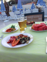 Рядом с портом "Марина" нашли пляж с песком. Кстати пляж от отеля Оскаймак. Но оно того не стоило. Вода грязная, плавает мелкий не понятный мусор, вода мутная.