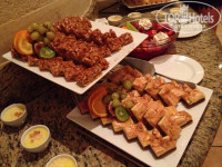 Браслеты действительно надели в 10.00. В это время завтрак уже заканчивается, но на территории рядом с детским клубом можно попить чай/кофе с булочками и другими сладостями. Заселили нас около 11.