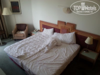 Номер в который нас заселили не большой, балкон ужасно маленький (даже негде было сушить вещи), не очень чистый в номере присутствовали неприятные запахи из туалета, ванная комната грязная, уборка в номере производилась очень плохо, кондей работает очень хорошо, ночью не умирали от жары, спать можно спокойно, только очень маленькие подушки, спина по утрам болела.