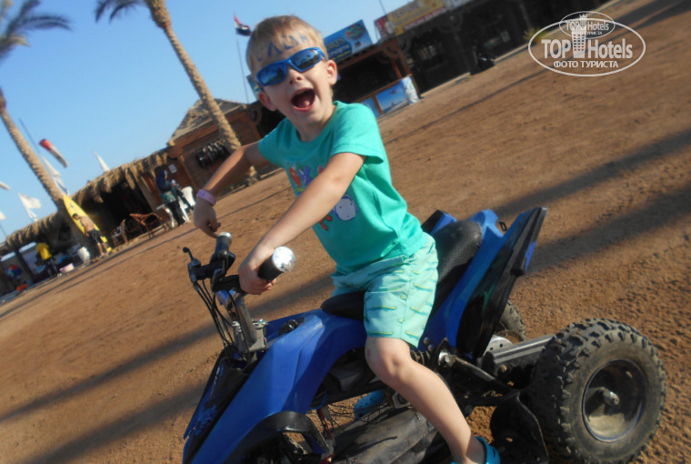 Отдыхали в этом отеле в конце июля 2015 года с 5-летним сыном. Специально искали отель для семейного отдыха, чтобы ребенку было весело. И не прогадали)) там есть все для детей, кроме детского меню - горки (на территории отеля 2 шт и при отеле целый аквапарк с горками для малышей и детей постарше), игровая площадка в отеле и на пляже, детская анимация (с 10 утра до 18 вечера)...это было очень кстати, тк из-за сильной жары и кондишнов прихватила простуду и валялась в номере с температурой...а тк мы поехали вдвоем, если бы не анимация, не знаю куда бы и дела ребенка. Также детская дискотека вечером, а взрослая дискотека проходит поздно и в закрытом павильоне, так что ничто не мешает деткам спать). До этого была и в Турции и в Египте, так что сравнить есть с чем. Для четверки отель очень даже неплох! Были недочеты как не очень качественная уборка в номере, но это не испортило позитивное впечатление об отеле. Русские, с которыми общалась в отеле, иногда излишне придирчивы, некоторым удавалось найти такие минусы, которые мне не "посчастливилось" разглядеть...)) Иностранцы (познакомилась там с немцем), напротив, на мой взгляд, более лояльны, жаловались только на качество уборки. По питанию обычный шведский стол с большим ассортиментом фруктов, довольно однообразными десертами. На обед всегда была курица, рыба и тушеное мясо. Вечером вроде каждый день давали шашлык, за которым выстраивалась очередь. Пляж коралловый риф, вход в воду с пантона. На пляже можно покурить кальян, позаниматься кайсерфингом, взять квадрики, в тч детские (10 мин - 5 $ ) напрокат, на территории отеля есть игровые автоматы, вечером и дети и взрослые резались в гонки и хоккей (жетон стоит 1 $ ). В отеле есть аптека, магазины, цены иногда даже ниже, чем за пределами отеля. Из минусов еще отмечу жару, которую плохо переношу, поэтому в египет в июле, августе больше не поеду... хотя в пик жары путевки намного дешевле чем например в октябре. В общем, ребенок отрывался по полной, ему очень понравилось, тк много детей, знакомств и развлечений, а аквапарк с бассейном с искуственными волнами был просто в фаворе))) Публика в отеле отдыхает разная - большинство русских, местные арабы отдыхают семьями (кстати, они очень дружелюбно относятся к русским, что было приятно и неожиданно), и немного поляков (с нами они очень прохладно)), но благо их там немного, шапками мы их закидали)))), из европейцев немного немцев. К взрослой анимации я спокойно отношусь, поэтому почти не ходила, но пару раз попала: на конкурс танца живота - ведущий - большой шутник - было забавно и весело...) и на выступление артистов-танцоров сети отелей дюсоле - очень классно станцевали, причем ребята все наши - русские и украинцы...Кстати, аниматоры в отеле все с украины и очень позитивные, так что проблем с пониманием не было. А вот официанты,бармены и сотрудники ресепшена по-русски плохо понимают, так что готовьтесь изъясняться на пальцах или на английском. В Турции с этим попроще...В общем, я не пожалела, что мне посоветовали этот отель, только если еще раз туда поеду, только не в пик жары)))