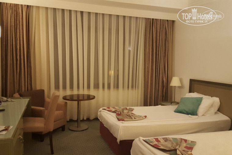 Только вчера вернулись из Анталии. Сразу же решила оставить отзыв, пока живы впечатления. Заселили в номер нас сразу же, но только потому, что самолет задержали на 6 часов, и в отель мы приехали поздно вечером. В номере – две раздельные кровати, балкона нет, окна выходят на крышу пристройки. В турагентстве нас предупредили, что могут предоставить номер низшей категории и надо заплатить на ресепшн 20$, чтобы получить хороший номер. Мы попросили предоставить другой номер с двухспальной кроватью и балконом. На что нам ответили - свободных номеров нет даже за деньги. В номере на полу лежал очень грязный ковролин, который давно требует чистки. Трубы засорены, поэтому вода из слива в ванне не сходит. Предоставлены на двоих 4 полотенца и 1 полотенце для ног. Постельное белье чистое. В номере убирались, меняли полотенца, приносили воду каждый день. На чай мы оставляли уборщице 2 раза по 1$. Еды было много, но через 3 дня все надоело. В основном съедобным был рис и курица. Много овощей и фруктов. Мороженое давали бесплатно с 16:00 до 16:30 каждый день. Посуда была ужасно грязной. Стаканы с отпечатками губ и пальцев. Даже одноразовые стаканы собирали, мыли и опять разливали в них напитки. Спиртные напитки пить невозможно. Бар работает только до 24:00. После этого бутылка пива стоит 5$. В течение дня около бара расставлены соевые котлеты и наггетсы. В 12 часов ночи подают суп. Море оказалось далеко от отеля. Идти надо по крутым ступенькам вниз около 1 км. Хотя в турагентстве нам сказали 200 м. На пляже лежаков не хватает, стоит только кулер с водой. Хотя у других отелей около моря расположены бары с едой и различными напитками. Полотенца для пляжа можно взять только за депозит – 10 $. Отель находится почти в центре Анталии. Рядом магазины, банки, кафе. Анимация в отеле ужасная. Людям самим приходится искать себе развлечения и ходить за аниматорами, чтобы те устраивали какие-то конкурсы и соревнования. Диджей все время говорит на непонятном языке (смесь англ. с турецким) и знает по-русски только «Давай-давай, зажигай». Постоянно обрывается музыка во время дискотеки. Поэтому народ в 9 вечера уходит в город. Около отеля находится кошачий домик, в котором живут около 30 кошек. От этого домика долетают до отеля неприятные запахи. Ночью кошки гуляют по территории отеля, сидят на столах, за которыми утром едят проживающие а отеле. Отель явно не 5-ти звездочный.